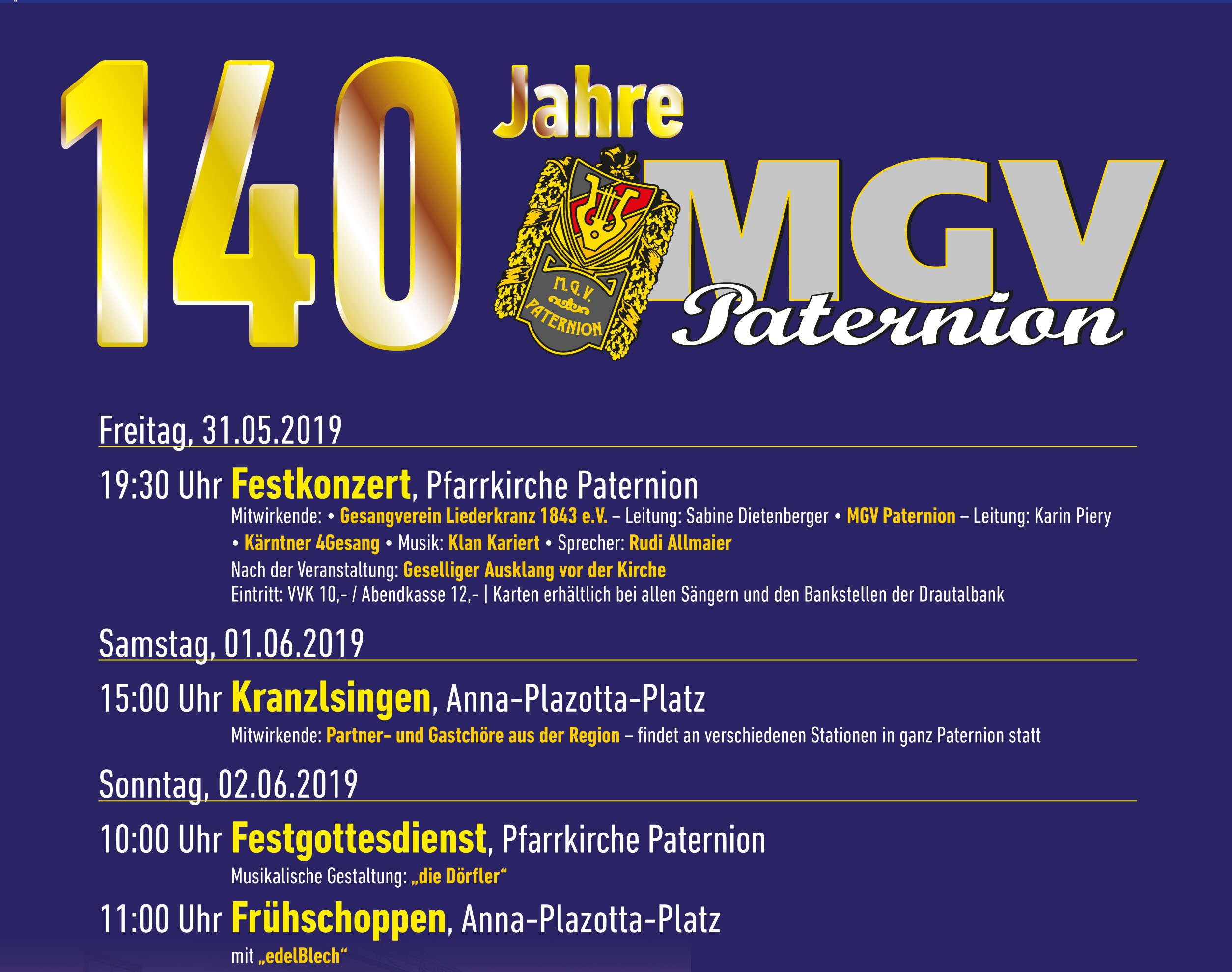140 Jahre MGV Paternion - Das Programm
